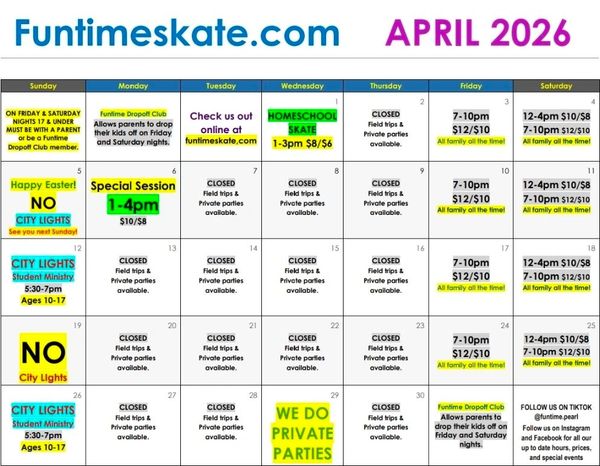 Funtime Skateland Pearl is an outreach of City Lights Ministry. It is our heart to share Jesus in the marketplace. There are a few different ways we are blessed to do this. If you would like to partner with us in this calling we would love to hear from you.